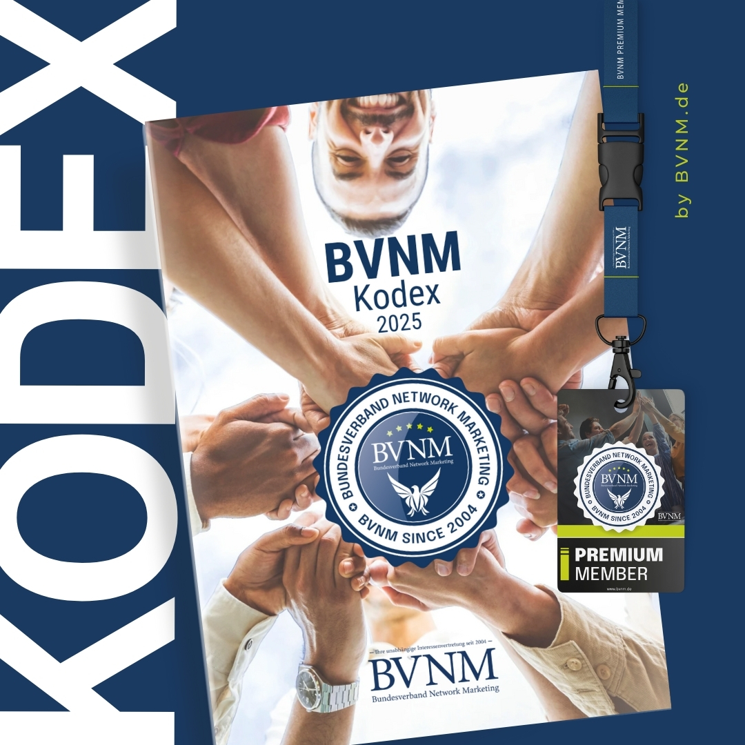 Mehr erfahrenDer Bundesverband Network Marketing (BVNM) steht nicht nur für Innovation und Wachstum, sondern auch für klare Werte und transparente Standards. Mit dem offiziellen BVNM-Ethikkodex bekennen wir uns zu höchsten ethischen Grundsätzen – gegenüber der Branche, unseren Partnern und vor allem unseren Mitgliedern.